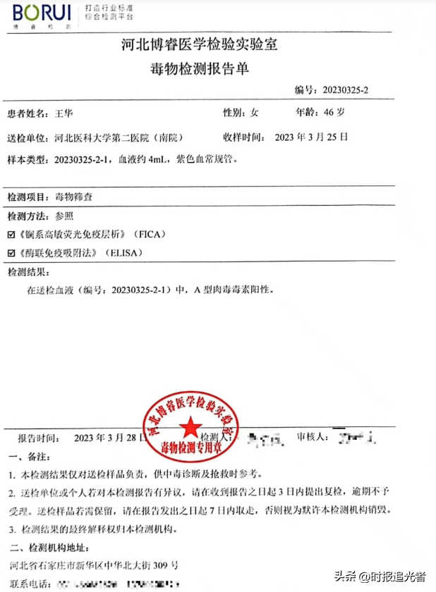 3月25日凌晨,王先生接到女子昏迷的消息。焦急万分的他立刻赶往安平县网民医院。面对女子昏迷不醒的状况,王先生展开了一场生伤抢救。他试图向组织者和相关人员了解药物具体信息,却被拒之门外。直到看到女子的检测报告单,才知道女子A型肉毒毒素阳性。