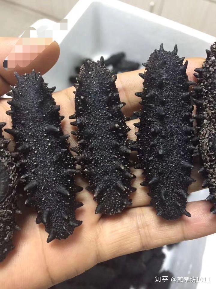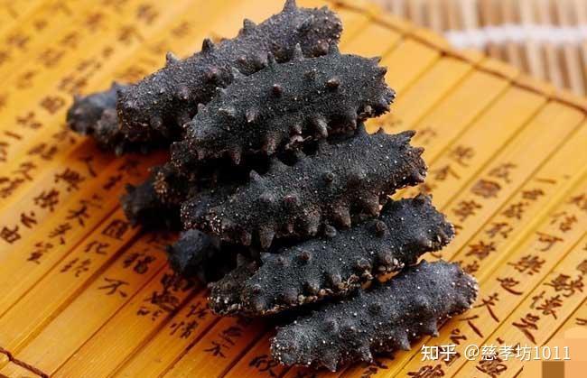加工过程:将活海参去掉内脏,煮2个小时后晾干,然后放在大缸里用盐腌,15天后再晒干而得。