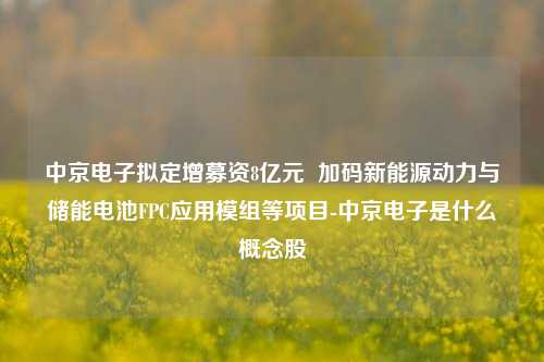 中京电子拟定增募资8亿元 加码新能源动力与储能电池FPC应用模组等项目-中京电子是什么概念股