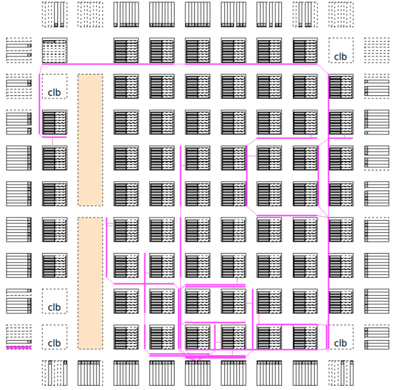 而FPGA芯片的电路结构是由可编程逻辑单元(CLBs)和可编程互连资源组成的。这种灵活性和可编程性为FPGA带来了广泛的应用和可定制性,但也意味着其电路结构和布局不够紧凑。由于可编程逻辑的存在,信号的传输路径较长,时钟网络的布线也相对复杂,这限制了FPGA的频率性能。