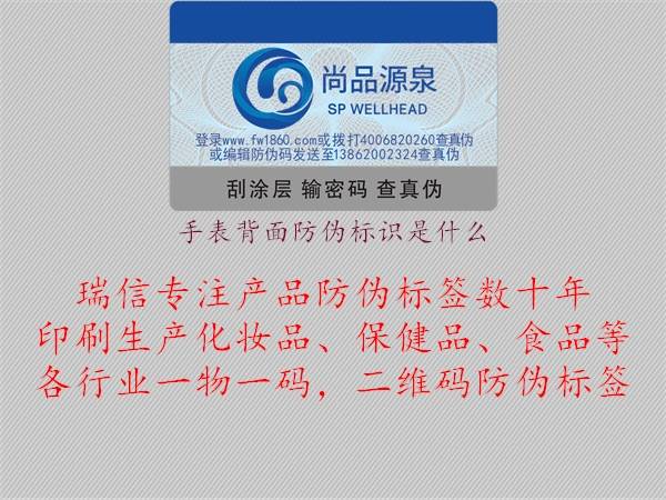 手表上的背面防伪标识通常是制造商为了防伪和产品真实性的保证而添加的标识。这些标识可以包括以下内容:
