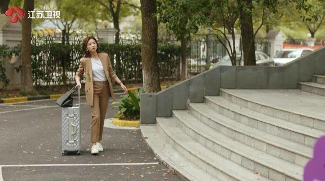 简言的这套杏色西装看起来中规中矩