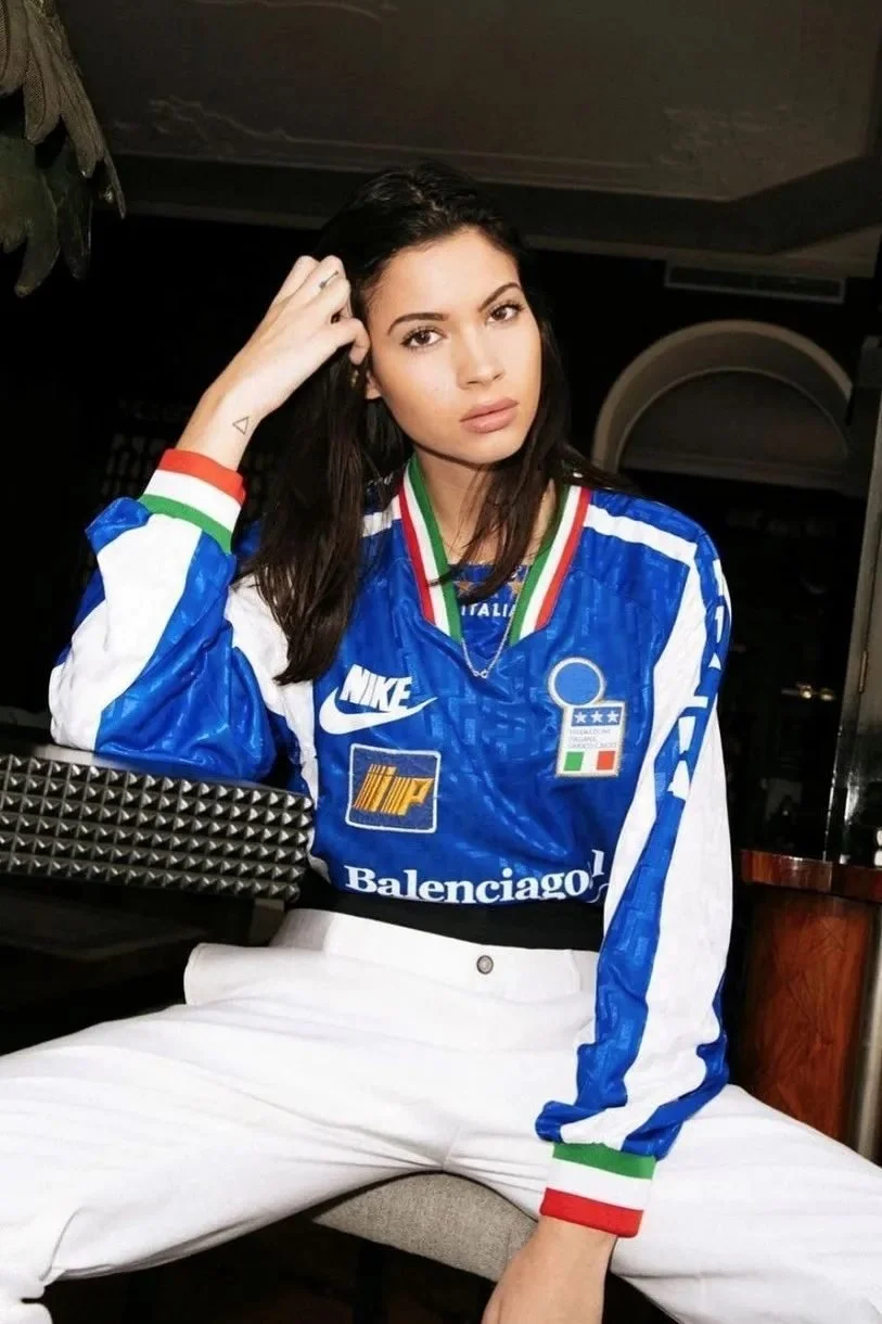 足球与时尚之间的连接并非一时兴起,球衣不是因为节点与时髦划上等号。2021年12月,球迷男孩Brandon Huntley将自己身穿Vintage adidas蓝色球衣搭配牛仔裤和球鞋的视频打上#blokecore标签上传在Tiktok,起初这个视频无人知晓,直至2022年卡塔尔世界杯的来临,Brandon的视频才随之走红,重新定义了今年的潮流密码。