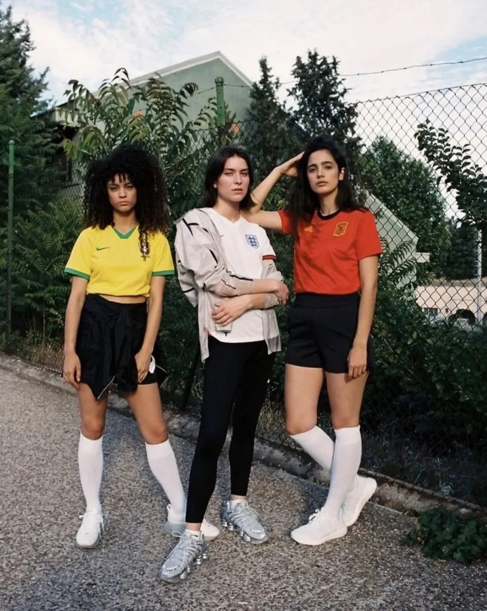 在充满男性气质的足球世界,人们长期以来默认女性的缺席,在英国,女足比赛甚至一度因为社会规训受到暴力阻挠,为纪念英格兰女足前往墨西哥踢球50周年,时装设计师 Martine Rose在与Nike合作的球衣项目【The Lost Lionesses】中,将英格兰球衣拆解,为此系列的球衣设计了双面徽章,诠释了不被定义的足球文化。