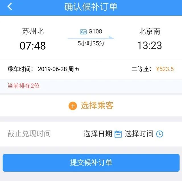 2019年5月22日,铁路12306网站、手机客户端全面上线候补购票服务,大大缓解了“抢票”难题。所谓候补购票,是指旅客在12306上购票时,如遇所需车次、席别无票,可在线排队候补,当对应的车次、席别有退票时,系统自动兑现车票。