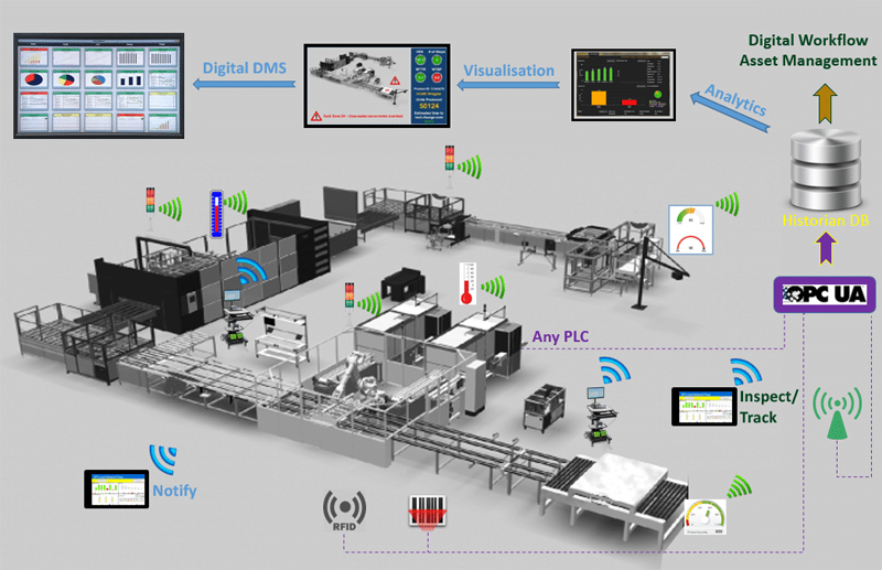 工业物联网的核心是设备互联,即将各种物理设备通过无线通信技术连接到网络上,形成一个庞大的物联网系统。这些设备包括传感器、控制器、机器人、机器视觉系统等等,它们可以通过传感器采集数据,通过控制器进行控制,通过机器视觉系统进行检测和识别等等。这些设备可以通过有线或无线方式连接到云端或本地服务器上,实现数据的传输和共享。