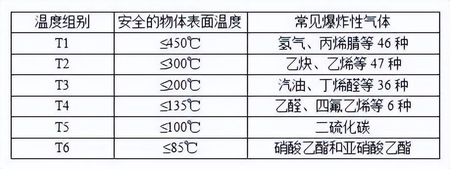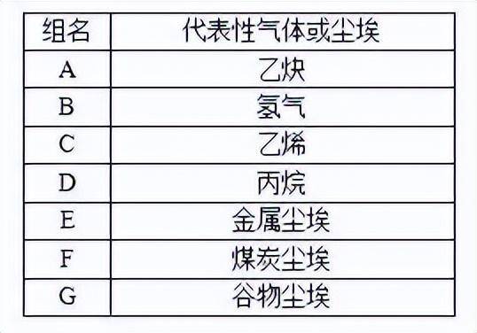 根据可能引爆的最小火花能量,我国和欧洲及世界上大部分国家和地区将爆炸性气体分为四个危险等级, 如下表 :
