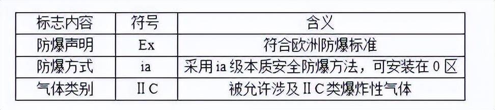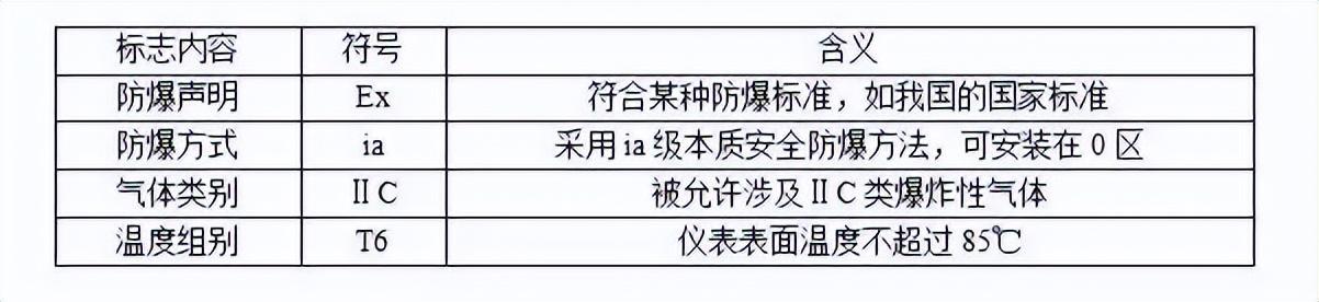 注 : 该标志中无温度组别项 , 说明该仪表不与爆炸性气体直接接触 .