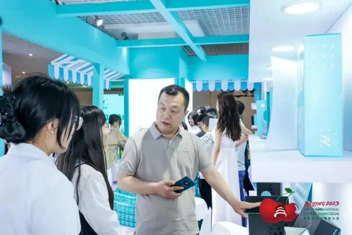 在众多的参展商里面,卓樱桃犹如一区黑马脱颖而出。其礼品级车厘子的定位、创意轻奢的包装形象、知更鸟蓝的品牌色,以及“卓樱桃 传心意”的Slogan,无不让人眼前一亮,吸引了众多的专家学者、樱桃产业同行、以及参展观众驻足停留,打卡拍照。