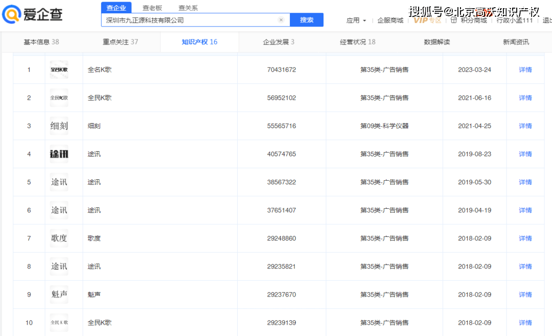 腾讯公司的知识产权保护意识不用多说,早在2014年5月29日,就申请了第9类、第42类的“全民K歌”商标——第14781502号商标(引证商标一)、第14781603号商标(引证商标二);后来,又于2017年2月24日,申请了22927253号“全民K歌”商标(引证商标三),在第41类相关商品服务类别。