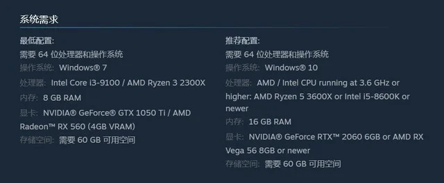 这游戏的画质一定要略微开高一点,据说低画质的女主更难看,参考下面这个官方推荐配置,我们用几块中端的显卡来进行一波测试。