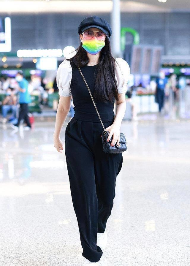 伊能静墨镜遮面,搭配黑色贝雷帽和彩虹色口罩,时尚感满分。身穿黑色修身上衣搭配白色泡泡袖t恤,下半身搭配黑色长裤,身材苗条,蛮腰纤细,造型看起来甜酷范十足,很显年轻活力。这状态真的完全不敢相信今年是52岁呀,太会保养了。