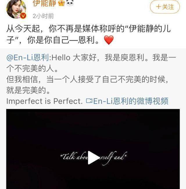 原创 伊能静儿子庾恩利开通微博,分享了视频,伊能静转发为儿子打call(伊能静和庾澄庆离婚的原因)