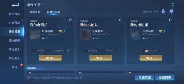 在新赛季中,【亲密关系】-【可建立关系】页面也进行了表现升级,会根据玩家和不同好友的数据来丰富社交标签,并依此来推荐关系类型和称呼,方便大家选择决策~