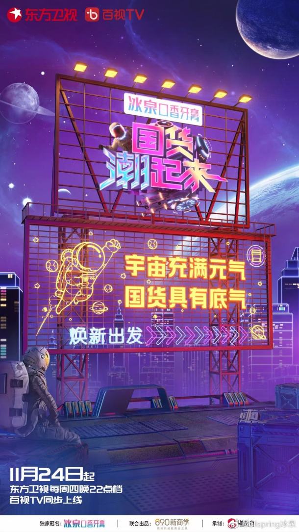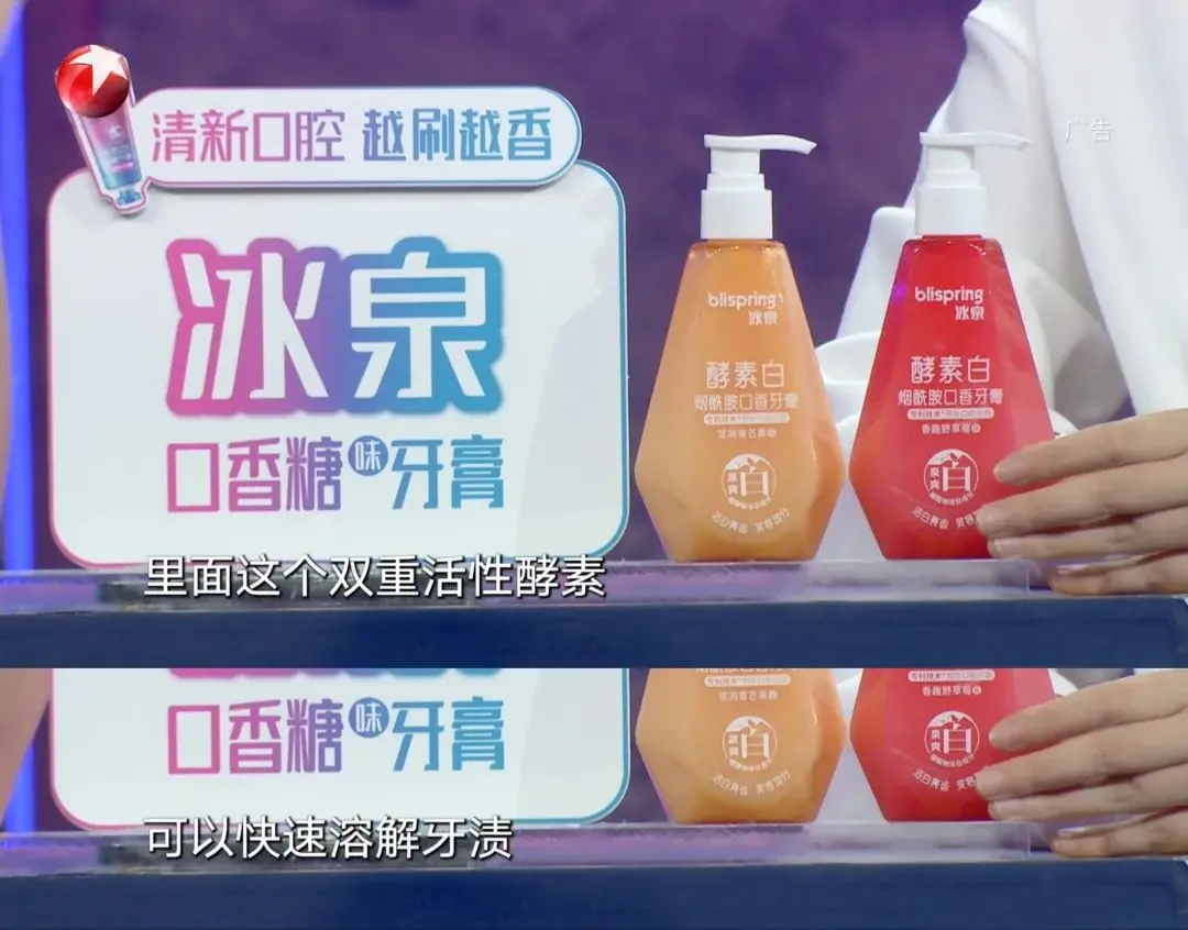 冰泉牙膏是国内口腔护理领域的新锐佼佼者,近两年顺应消费者年轻化的趋势,以口香牙膏为切入点,进行了差异化的品类创新。在《国货潮起来》第二季中,冰泉酵素白烟酰胺口香牙膏惊艳亮相,其主打的清新口气和美白牙齿的功能满足了当代年轻人想要近距离社交又要口腔氛围美好的需求。
