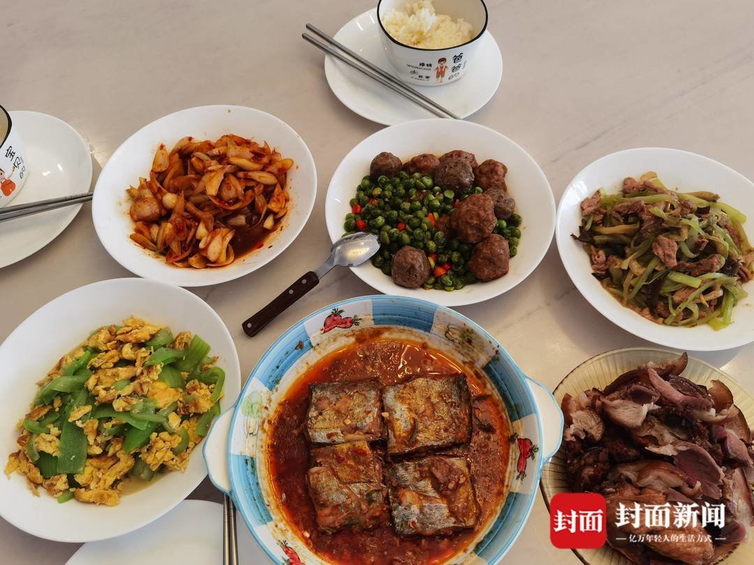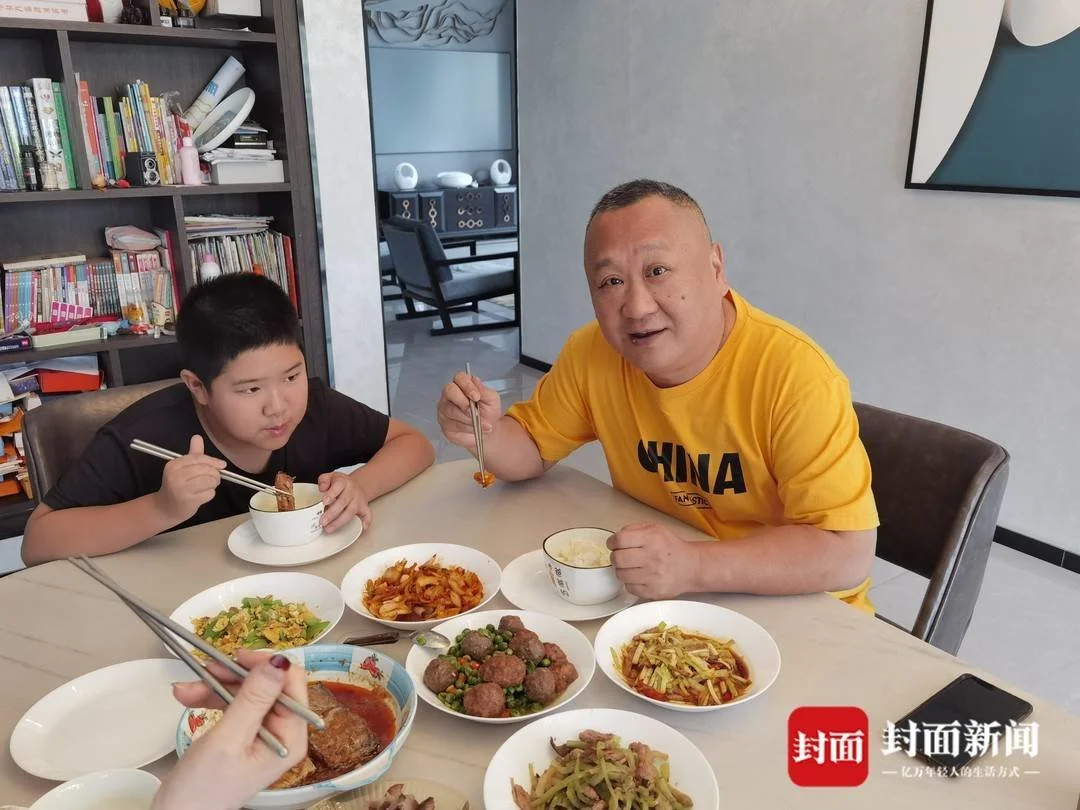 莴笋木耳炒肉、豌豆丸子、丝瓜炒蛋、配上“安逸”的拌藠头,昨天没吃完的腊肉和带鱼今天再热一下,就是荤素搭配、接地气又美味的一餐。平常在家里,有空的时候廖健也爱做饭,且厨艺不错。廖健笑言,自己的拿手菜是“廖氏回锅肉”,“跟传统的回锅肉概念不一样,用仔姜和小米辣加在一起,用五花肉不用座墩肉。”