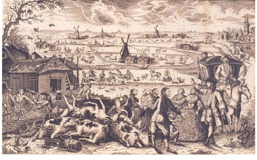 18世纪的欧洲曾爆发严重的牛瘟疫情。