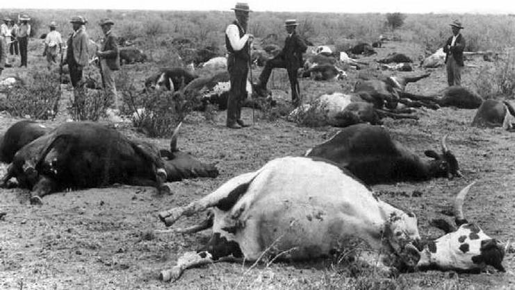 1896年南非弗雷堡的牛瘟。图片来源:Veterinary History Society of Onderstepoort Veterinary Research Institute