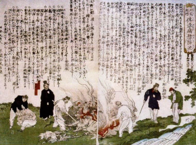 19世纪描绘牛瘟的日本版画。图片来源:wikimedia