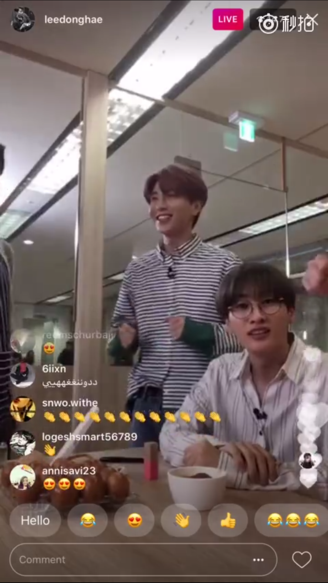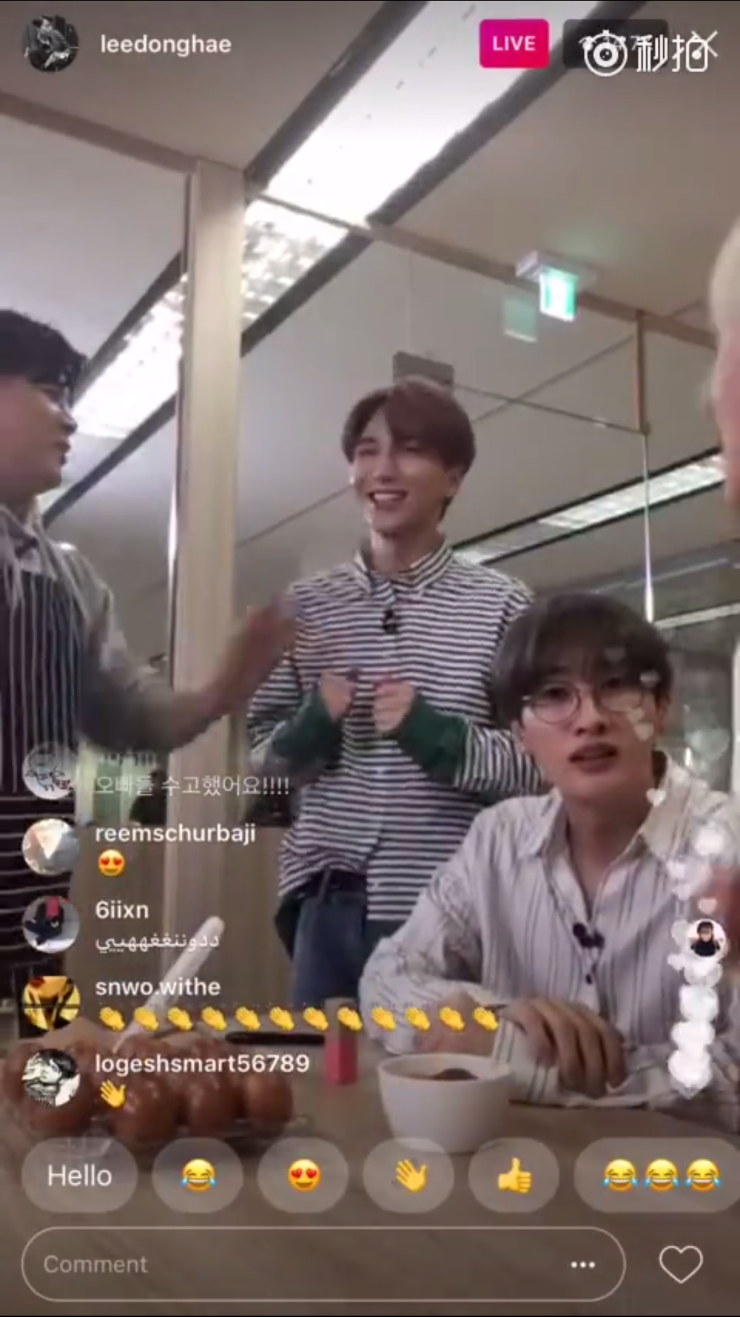 成员们并没有回复,只有李赫宰看着李东海,小小小小声的说了句“我也爱你。”声音小到听的不是那么清楚(也有饭提出说的是“阿拉索(知道啦)”),但是带着耳麦的李东海和团员却是听的一清二楚呀。