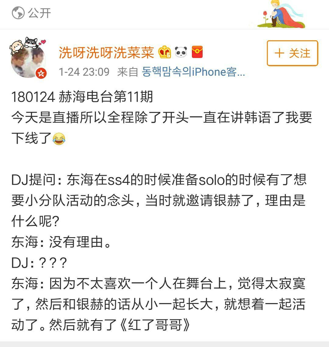 李赫宰:这个我知道这次编辑是在1.25了,看到有评论提醒才想起来哈哈哈,主要是已经在微博上发完疯了。这边还想说说1.24的电台啦,在电台里面,两人说了对他们两人小分队的想法,怎么说吧,就像两个孩子抓着小小的计划,彼此扶持慢慢学习着,在并肩成长中彼此包容