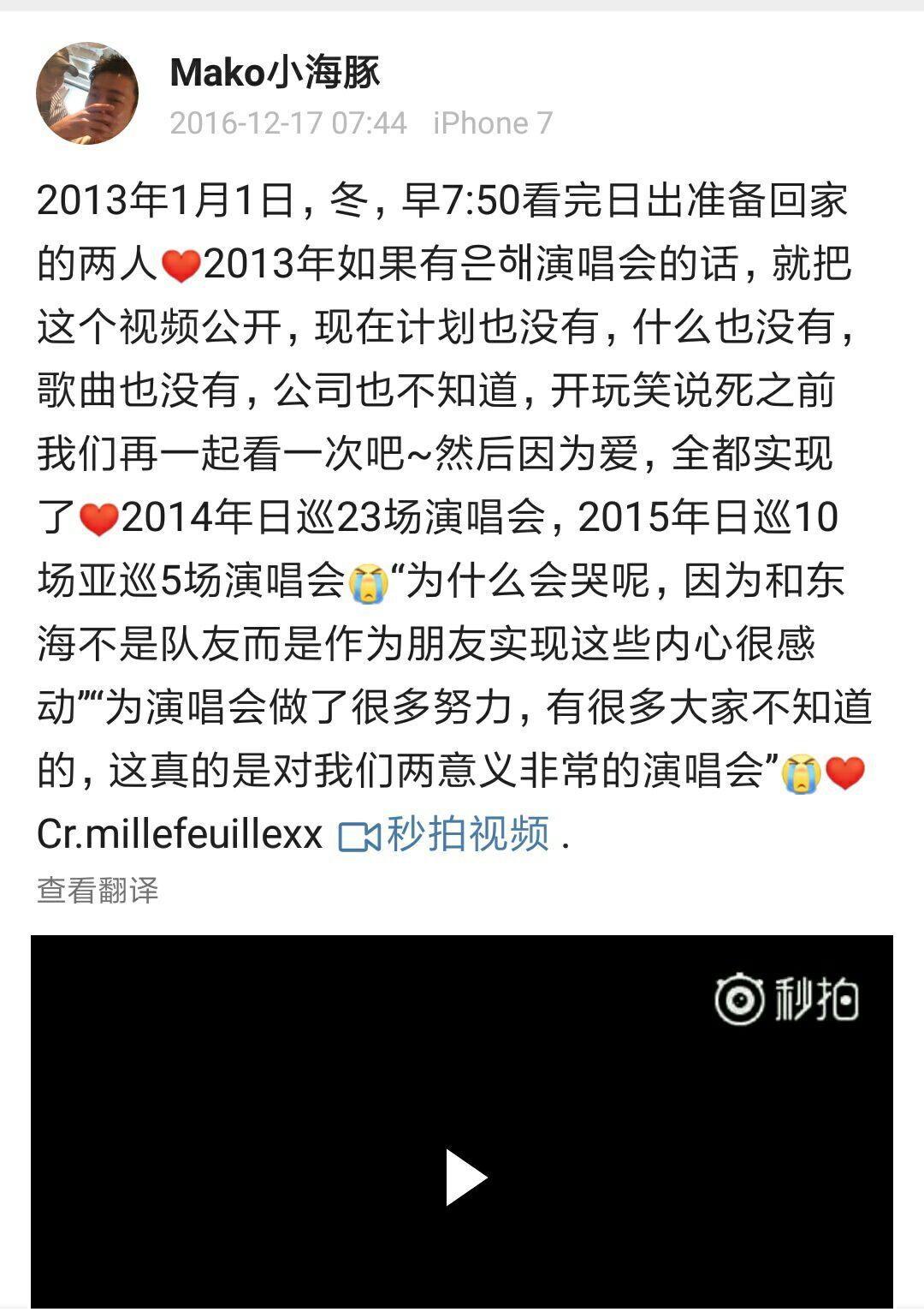17年ss7,李东海对成员说了“我爱你成员们。”