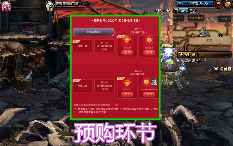 预购:完成一次春节礼包预购登记,可获得2次抽奖机会。