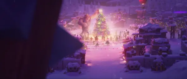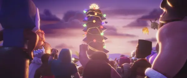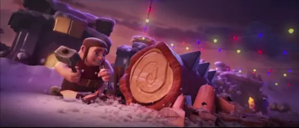 影片开头,Merry Clashmas的横幅随风飘扬,宣布着今年的Clashmas的来临。飘雪、驯鹿、槲寄生、姜饼人、五彩斑斓的装饰,圣诞节元素一应俱全。哥布林正觊觎着闪闪发光的金币,野蛮人搬来了超多“礼物”,巨人点亮了圣诞树。