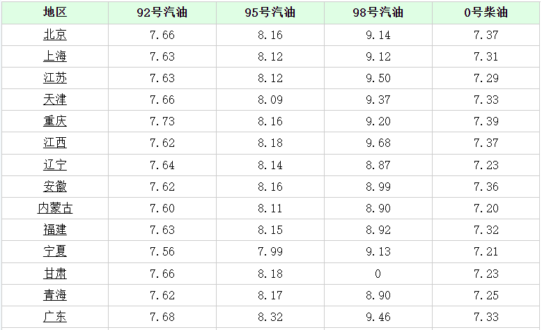 今日(7月25日)92号汽油,95,98汽油与0号柴油请看下方油价列表,对于云南、陕西、四川、辽宁、新疆、青海、西藏,贵州、内蒙古、黑龙江油价没有实行统一价格,请进入本号输入地区名称查询