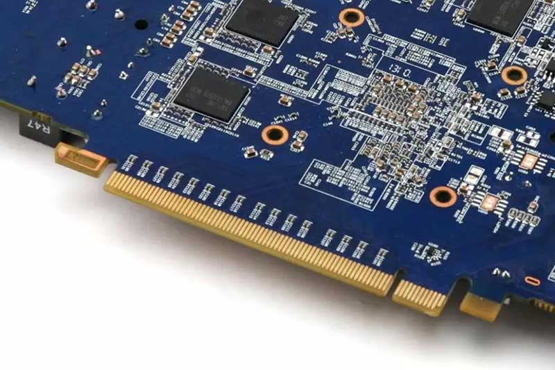 金手指通常由金属材料制成,常见的是使用镀金(Gold Plating)的方式来提高接触的可靠性和耐腐蚀性。金属材料有很好的导电性和抗氧化性,因此金手指能够提供良好的信号传输和接触性能,同时还能有效地防止腐蚀和氧化。