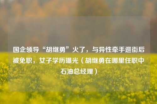 国企领导“胡继勇”火了,与异性牵手逛街后被免职,女子学历曝光(胡继勇在哪里任职中石油总经理)