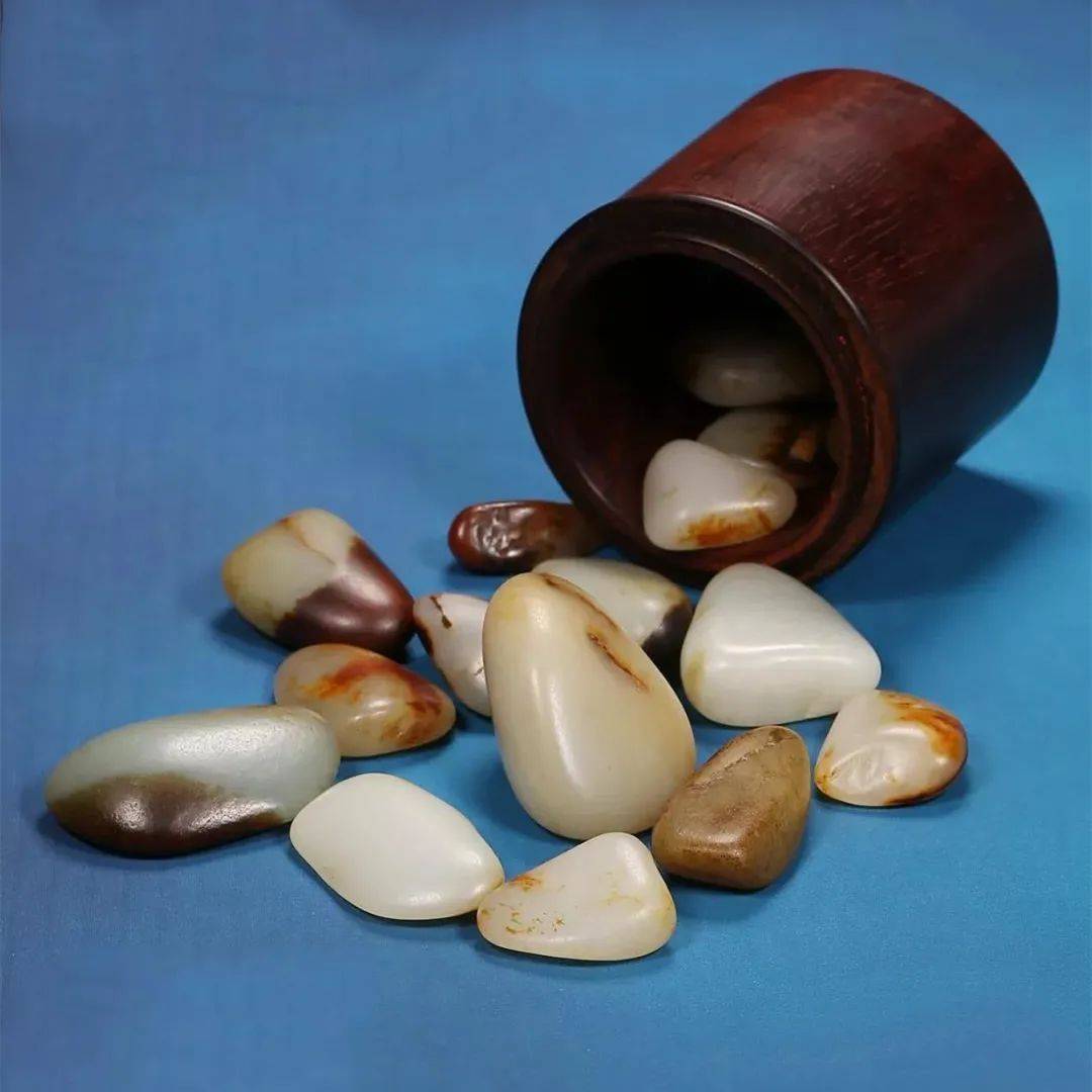 和田玉的颜色众多,白玉籽料、有黄沁、红沁、青花、碧玉籽料,不同颜色的籽料搭配起来更有色彩的美感,而且能了解到不同籽料的美。