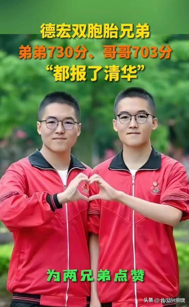 云南双胞胎学霸:高考成绩双双超过700分,都报考清华大学