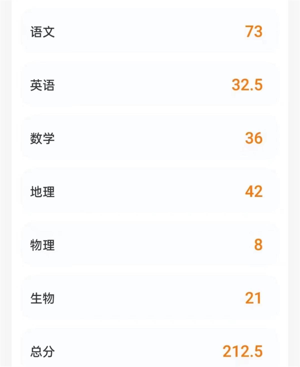 这位家长给记者发来了几名高一学生的期末成绩单,有的孩子物理只有8分,有的孩子化学只有9分……成绩单还显示,这次期末考试是在7月11日,5天后成绩公布。