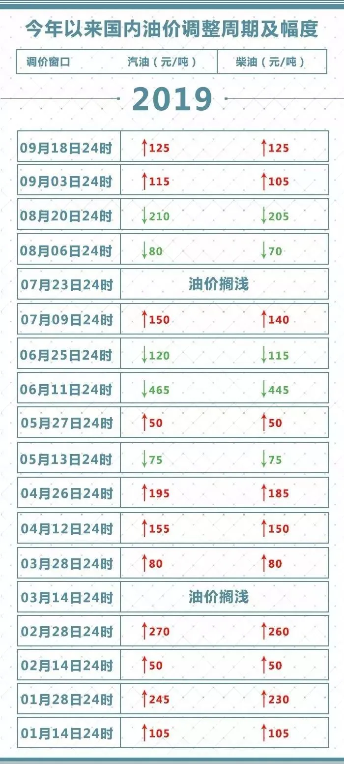 9月18日24时,新一轮成品油调价窗口开启,国内汽、柴油价格每吨均提高125元。加满一箱92号汽油将多花大约5元,本次调价是2019年国内成品油调价窗口出现的第十一次上涨!