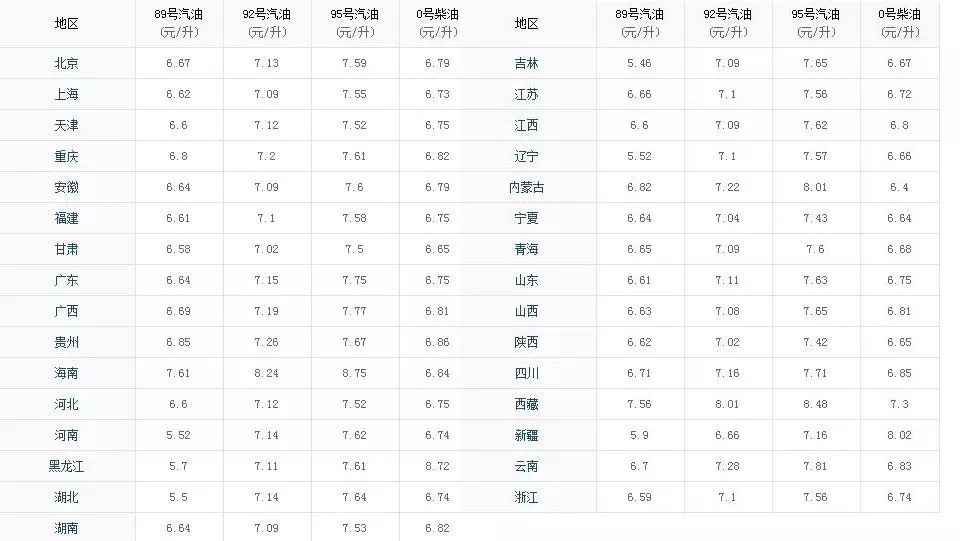 ▲今日汽 /柴油价格(点击图片可缩放大小)