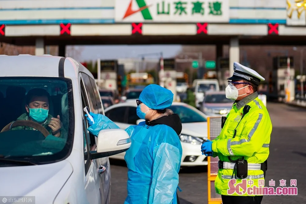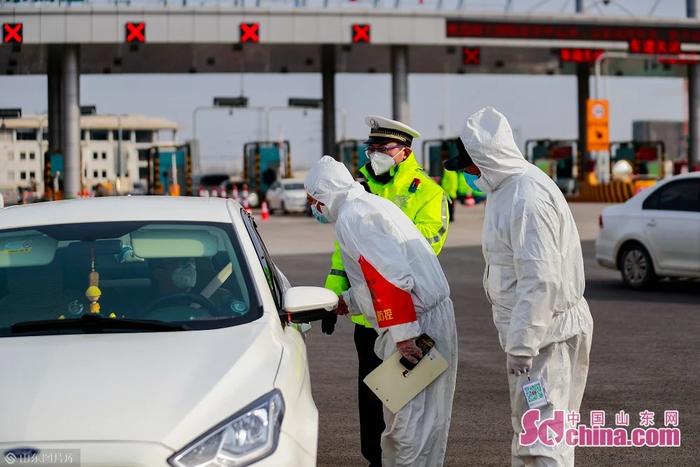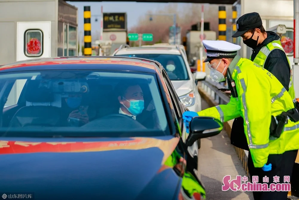 2月19日,山东高速济南西收费站出口,济南槐荫交警大队民警正在对下高速车辆进行检查,对运输生产、生活、防疫应急物资的货运车辆本着安全、高效、及时的原则快速通关,在确保安全的前提下全天通行,最大限度满足复工复产运输需求。据悉,济南公安交警部门18日特别推出保障复工复产、服务经济社会发展10条举措,方便交通运输。济南交警派驻警力24小时值守济南市的45处高速公路收费站和28处国省道市界检查点。