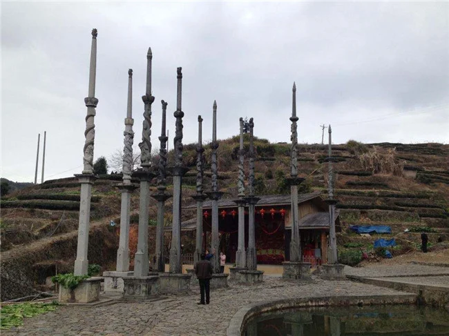 村口矗立着2根高近10米的旗杆,旗杆下面有长方形的花岗石,旗杆石上都写着举人、进士什么年代参加科举考试,高中多少名,被授予什么官职。清楚地记载着:陈政宣参加光绪二十六年(1900年)、二十七年(1901年)拼科考试中第七名举人,任翰林院编修。