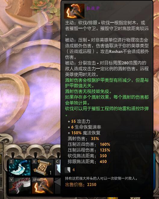 图20.嗯除了分裂它还能用来砍树,砍树有时候有奇效的。各位LOLer注意到绿字第三条了吗,记得当年5提亚马特的龙女吗……这在DOTA中是允许的,但是一般很少人这么出(但是5狂战的船长那效果真是爆炸,一刀团灭5人不是梦)。