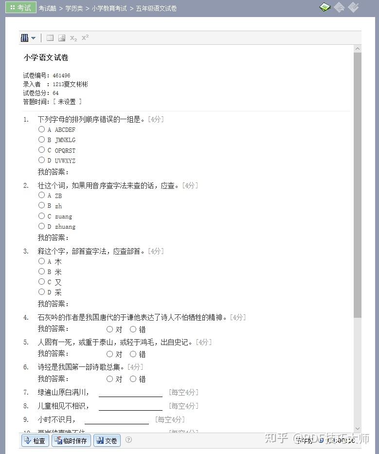这个网站试卷涵盖的领域跨度非常大!从小学到考博,从职业专业试题到星座测试,应有尽有,不得不佩服网站的整合能力啊!