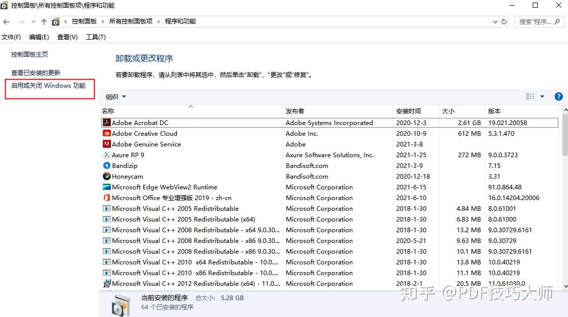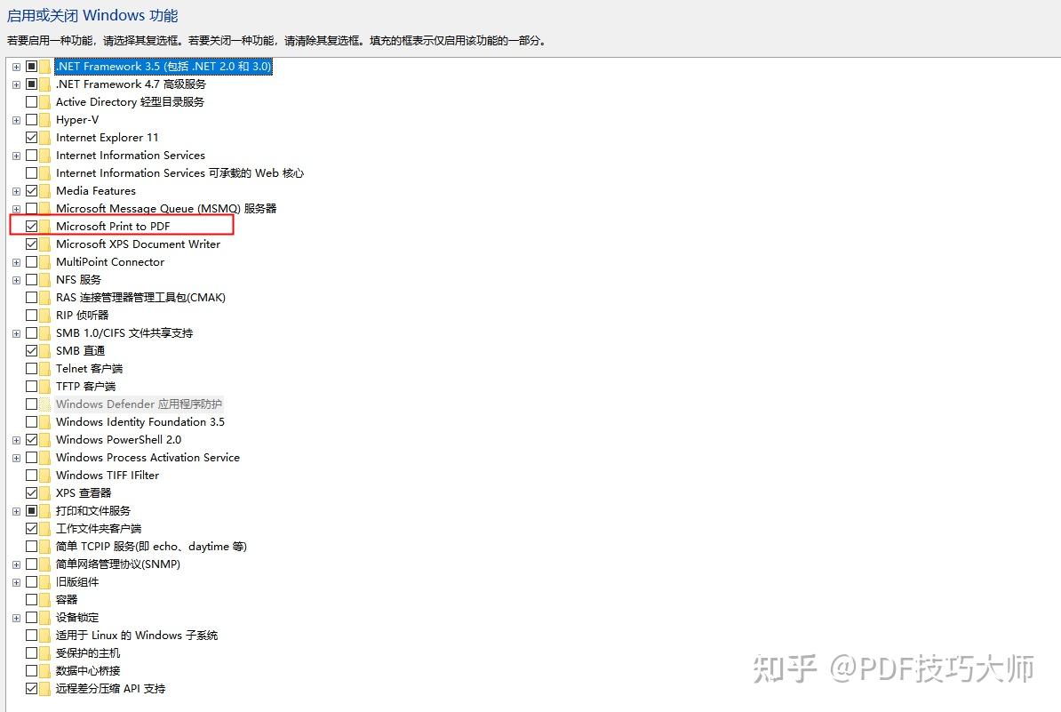 找不到【Microsoft Print To PDF】的话,需要打开【控制面板】,点击【程序和功能】,找到【启用或关闭Windows功能】,勾选【Microsoft Print To PDF】,就可以开启这个Windows自带的虚拟打印机啦~