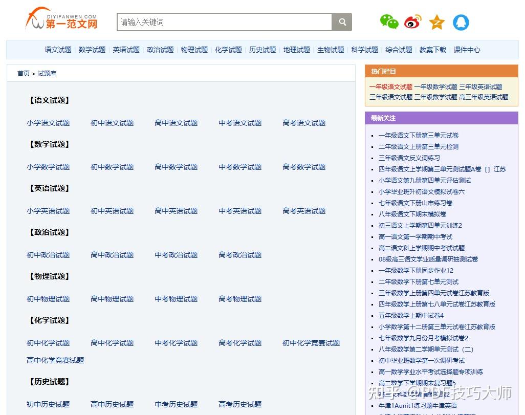 又是一个作文网里藏试卷的网站嘿嘿!我们只需要在第一范文网的首页点击试题库,就可以发现各种科目的试题啦~